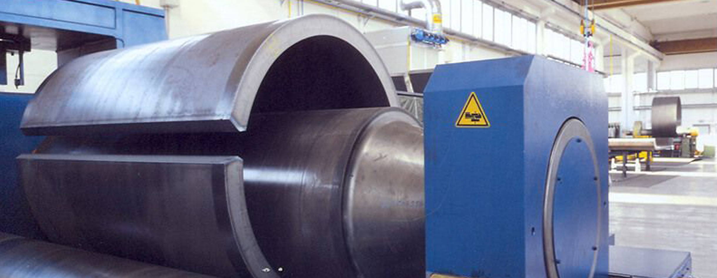 水平下調(diào)式三輥卷板機(jī)可用于將一定厚度的金屬板材卷制成筒狀、弧形或一定錐度的工件。該設(shè)備可用于大型厚壁承壓設(shè)備、化工壓力容器等產(chǎn)品的筒體卷制和焊后校圓,